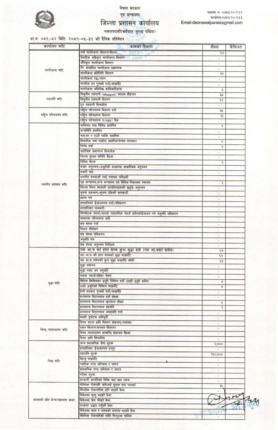 तस्बिर : मिति २०८१।०५।३१ गतेका दिन सम्पादित गरिएका कार्यको संख्यात्मक विवरण