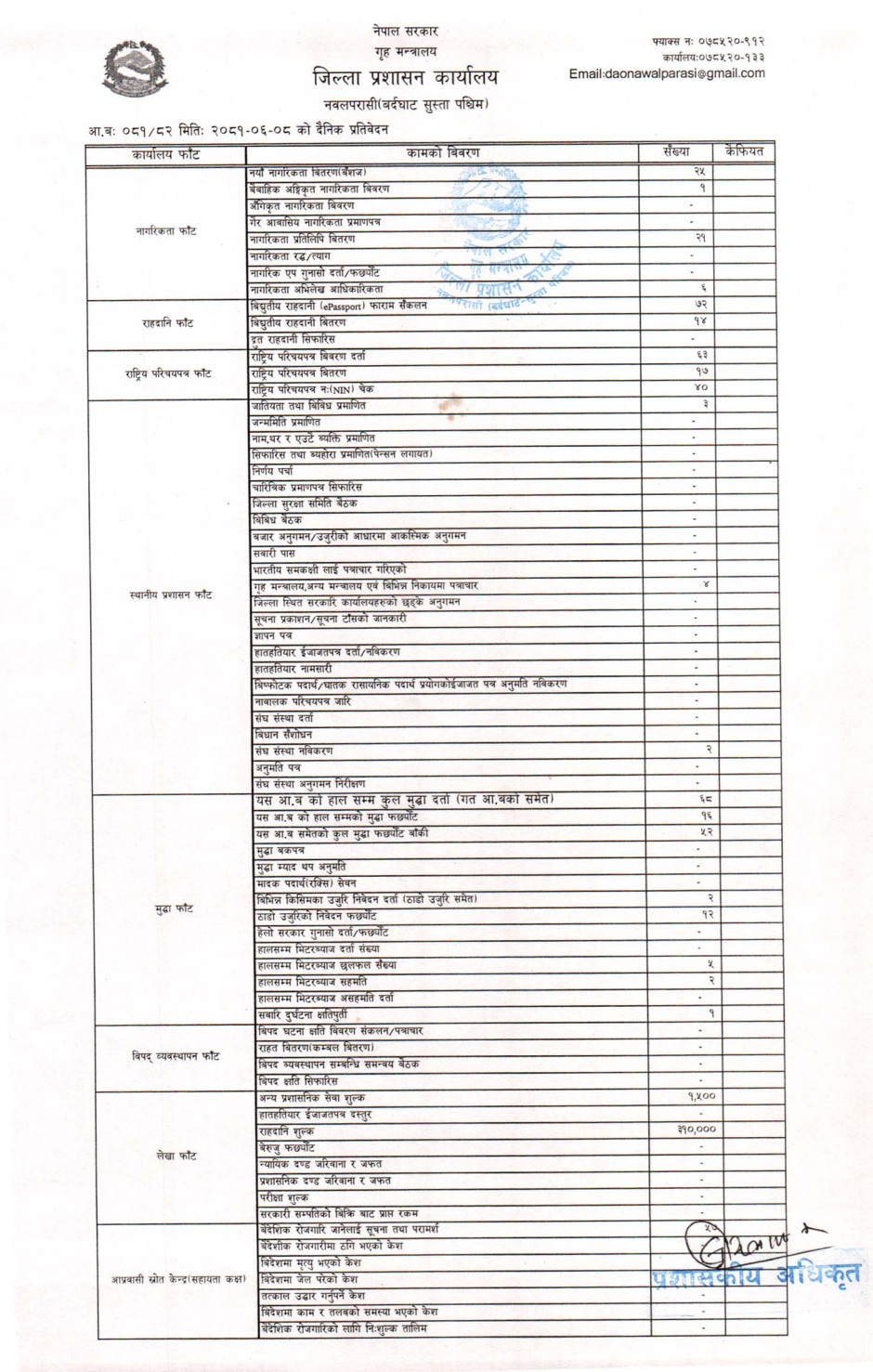 तस्बिर : मिति २०८१।०६।०८ गतेका दिन सम्पादित गरिएका कार्यको संख्यात्मक विवरण