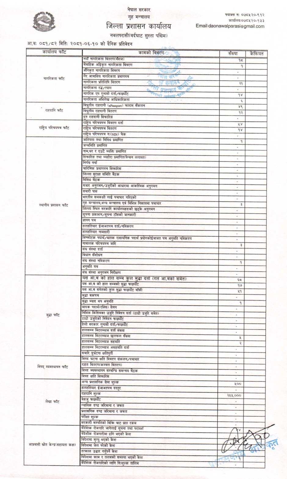 तस्बिर : मिति २०८१।०६।१० गतेका दिन सम्पादित गरिएका कार्यको संख्यात्मक विवरण