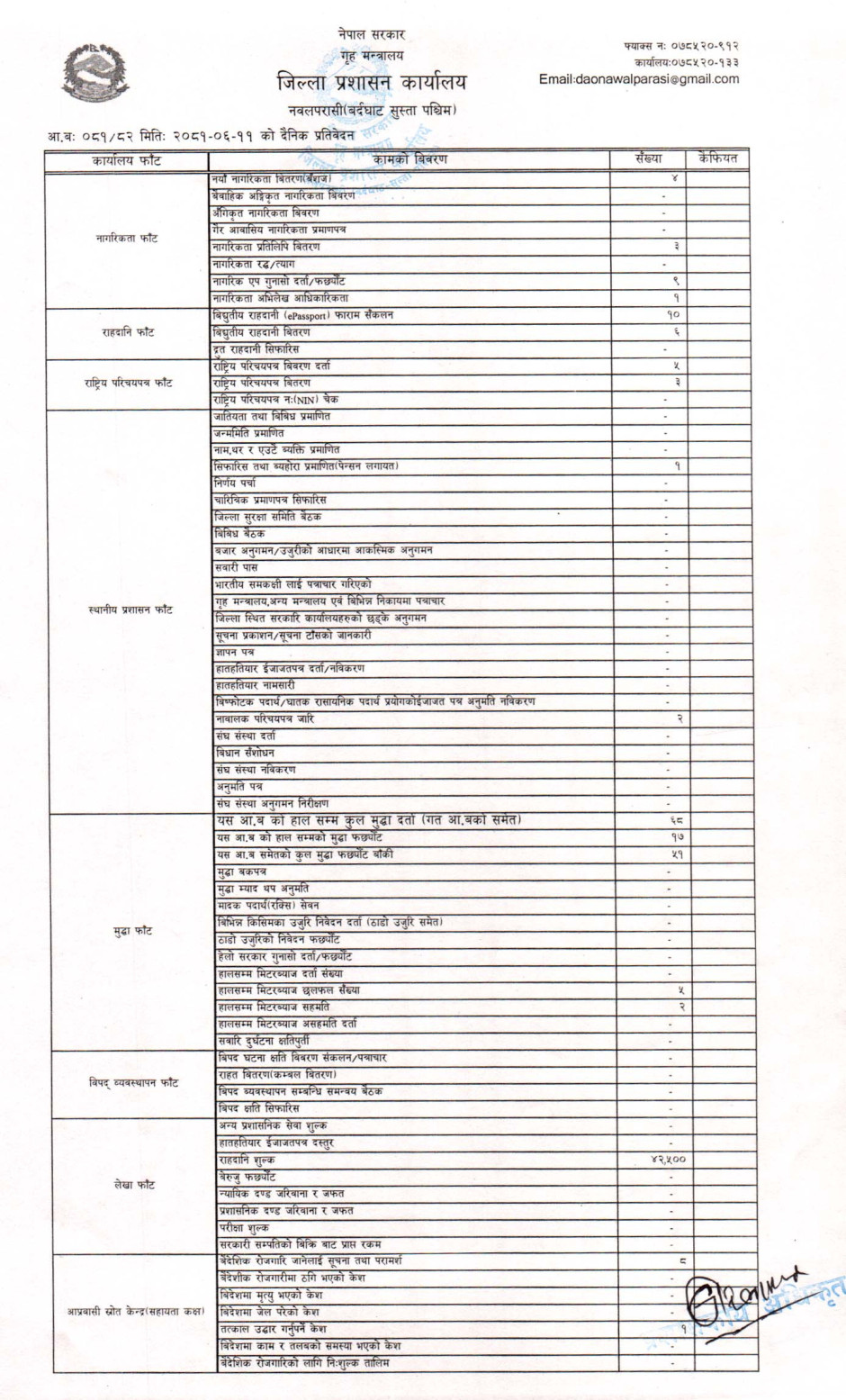 तस्बिर : मिति २०८१।०६।११ गतेका दिन सम्पादित गरिएका कार्यको संख्यात्मक विवरण