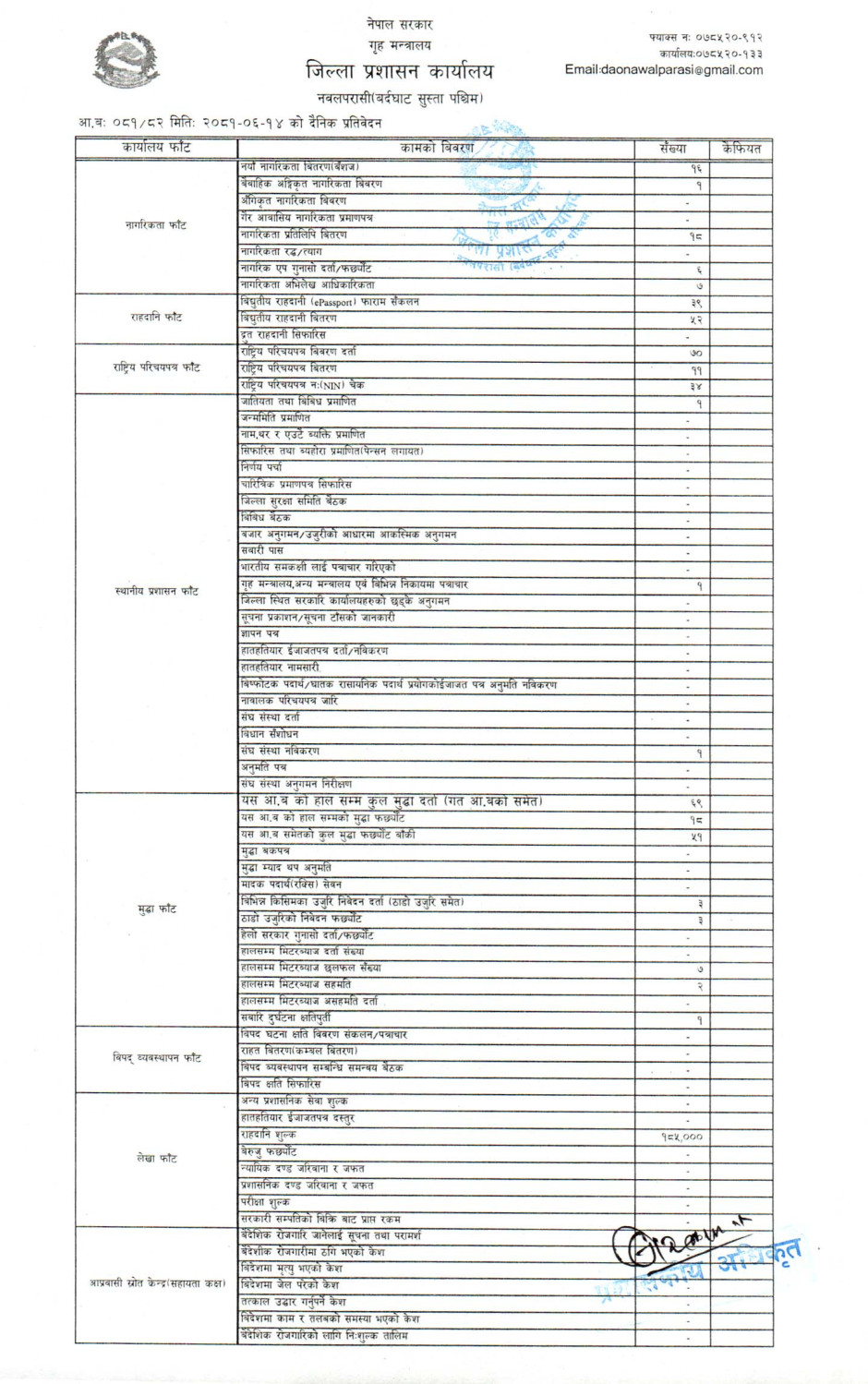 तस्बिर : मिति २०८१।०६।१४ गतेका दिन सम्पादित गरिएका कार्यको संख्यात्मक विवरण
