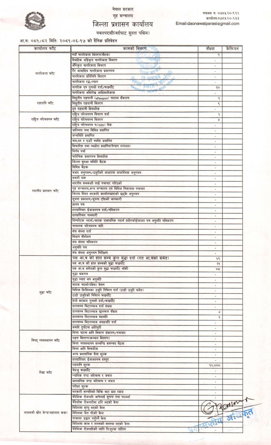तस्बिर : मिति २०८१।०६।१७ गतेका दिन सम्पादित गरिएका कार्यको संख्यात्मक विवरण