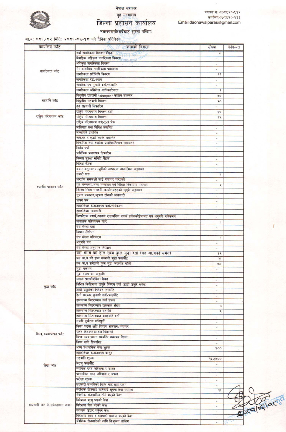 तस्बिर : मिति २०८१।०६।१८ गतेका दिन सम्पादित गरिएका कार्यको संख्यात्मक विवरण