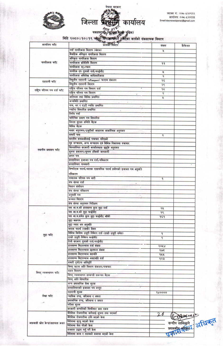 तस्बिर : मिति २०८०।१०।१९ गतेका दिन सम्पादित गरिएका कार्यको संख्यात्मक विवरण