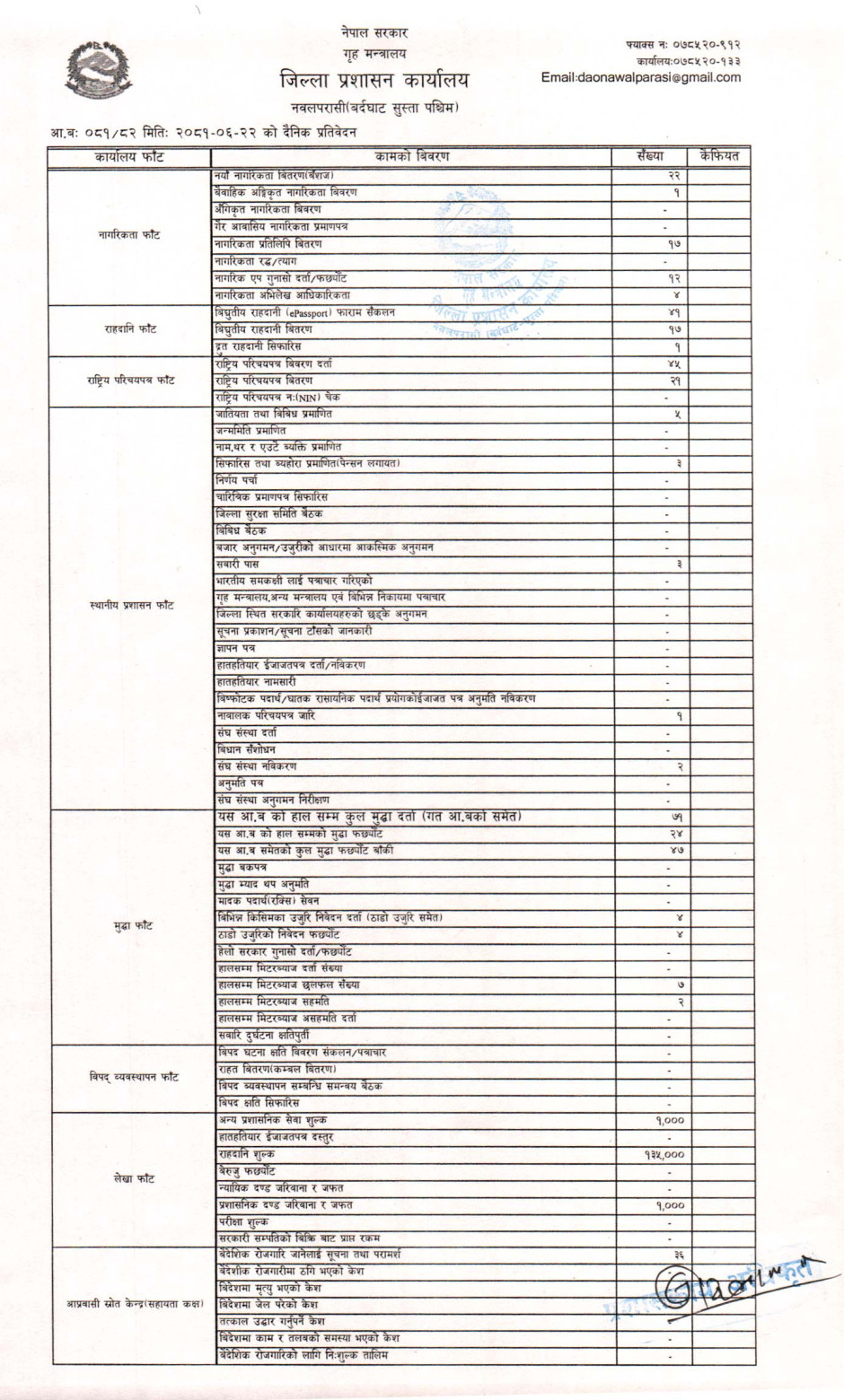 तस्बिर : मिति २०८१।०६।२२ गतेका दिन सम्पादित गरिएका कार्यको संख्यात्मक विवरण
