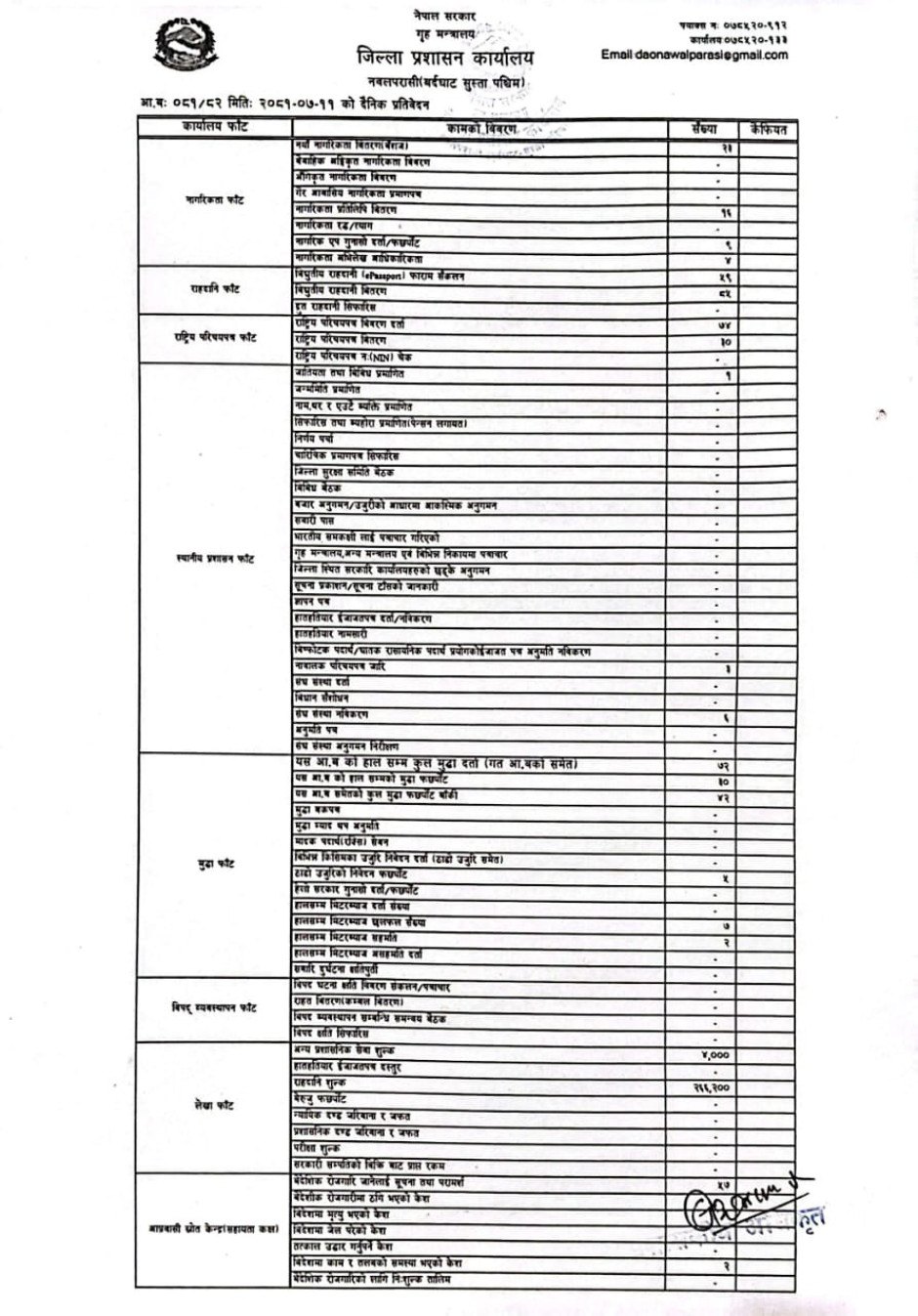 तस्बिर : मिति २०८१।०७।११ गतेका दिन सम्पादित गरिएका कार्यको संख्यात्मक विवरण