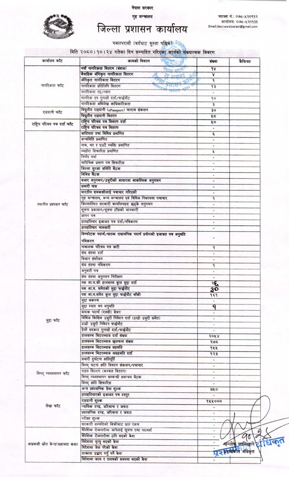 तस्बिर : मिति २०८०।१०।२४ गतेका दिन सम्पादित गरिएका कार्यको संख्यात्मक विवरण