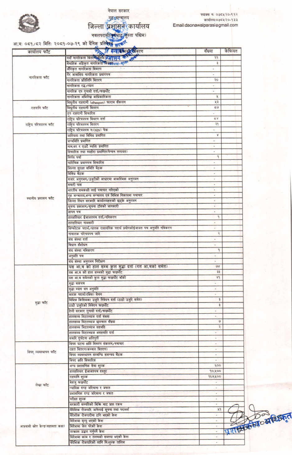 तस्बिर : मिति २०८१।०७।२९ गतेका दिन सम्पादित गरिएका कार्यको संख्यात्मक विवरण