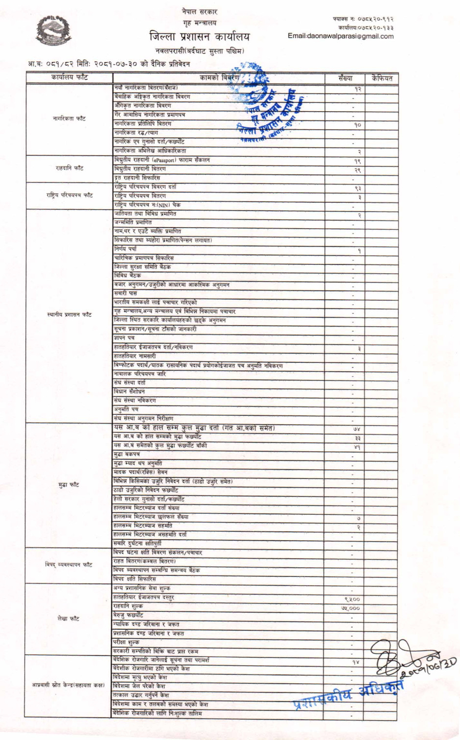 तस्बिर : मिति २०८१।०७।३० गतेका दिन सम्पादित गरिएका कार्यको संख्यात्मक विवरण