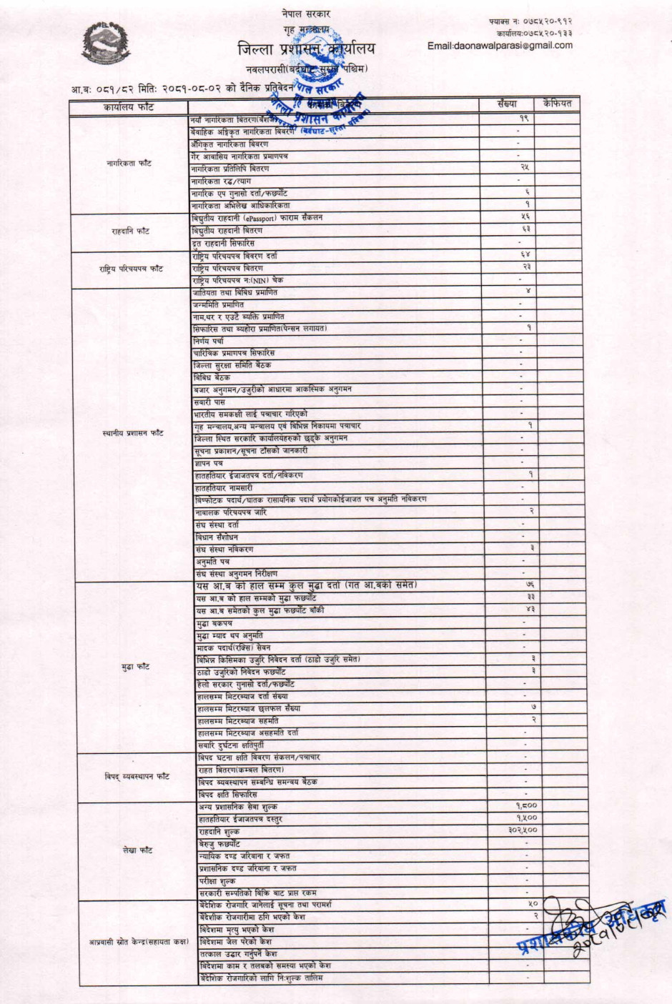 तस्बिर : मिति २०८१।०८।०२ गतेका दिन सम्पादित गरिएका कार्यको संख्यात्मक विवरण