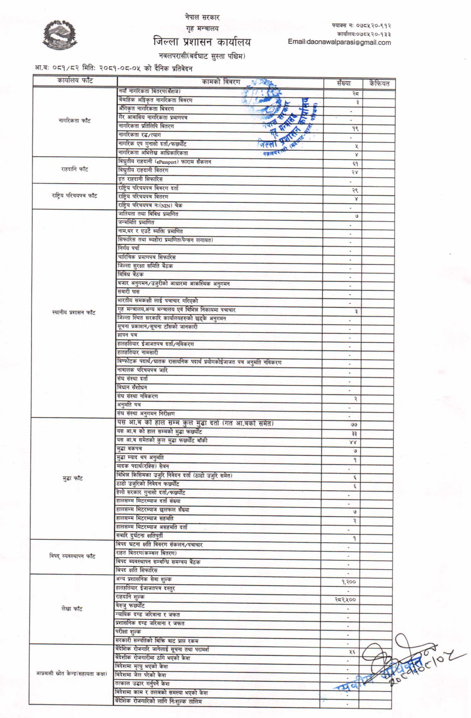 तस्बिर : मिति २०८१।०८।०५ गतेका दिन सम्पादित गरिएका कार्यको संख्यात्मक विवरण