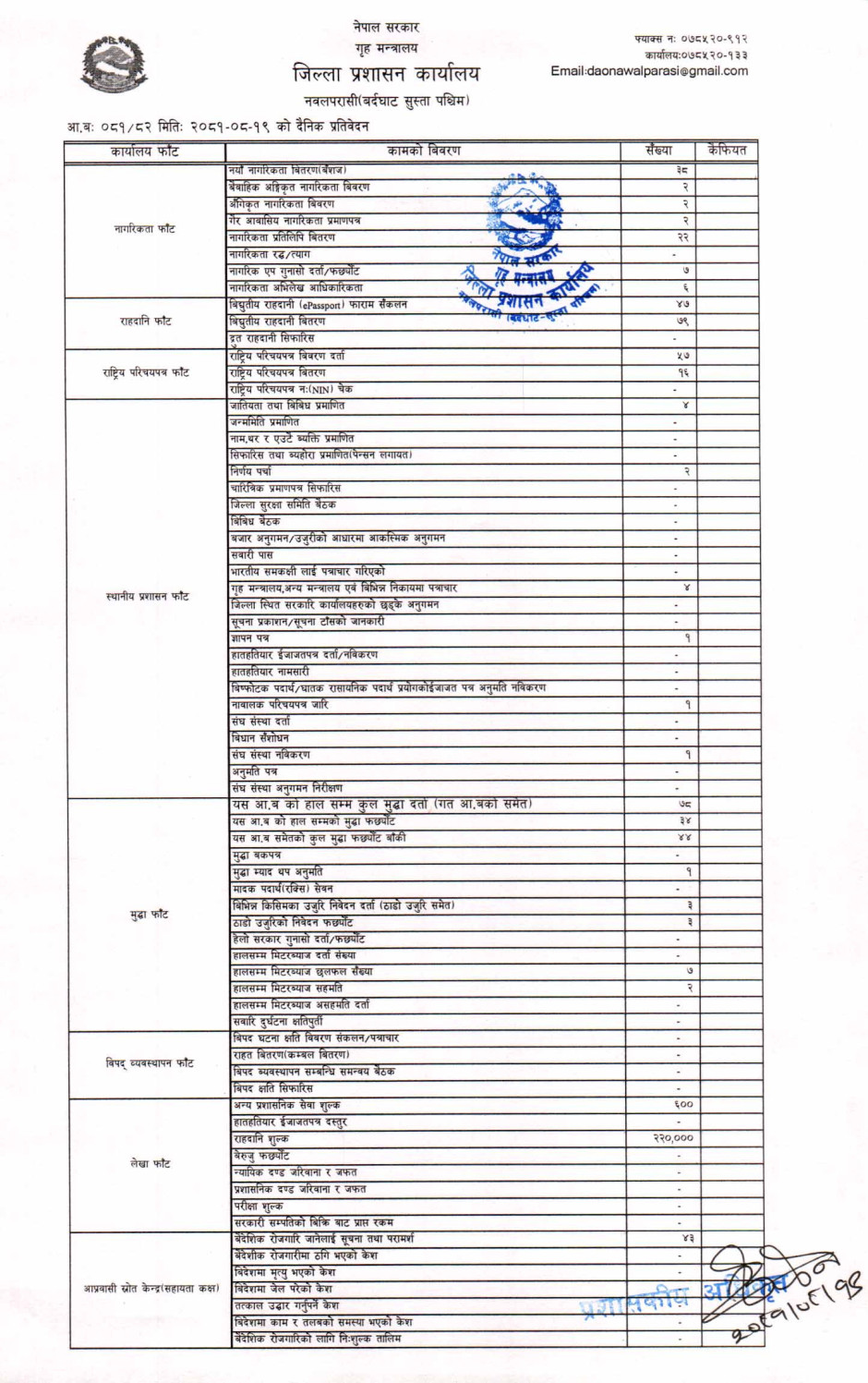 तस्बिर : मिति २०८१।०८।१९ गतेका दिन सम्पादित गरिएका कार्यको संख्यात्मक विवरण