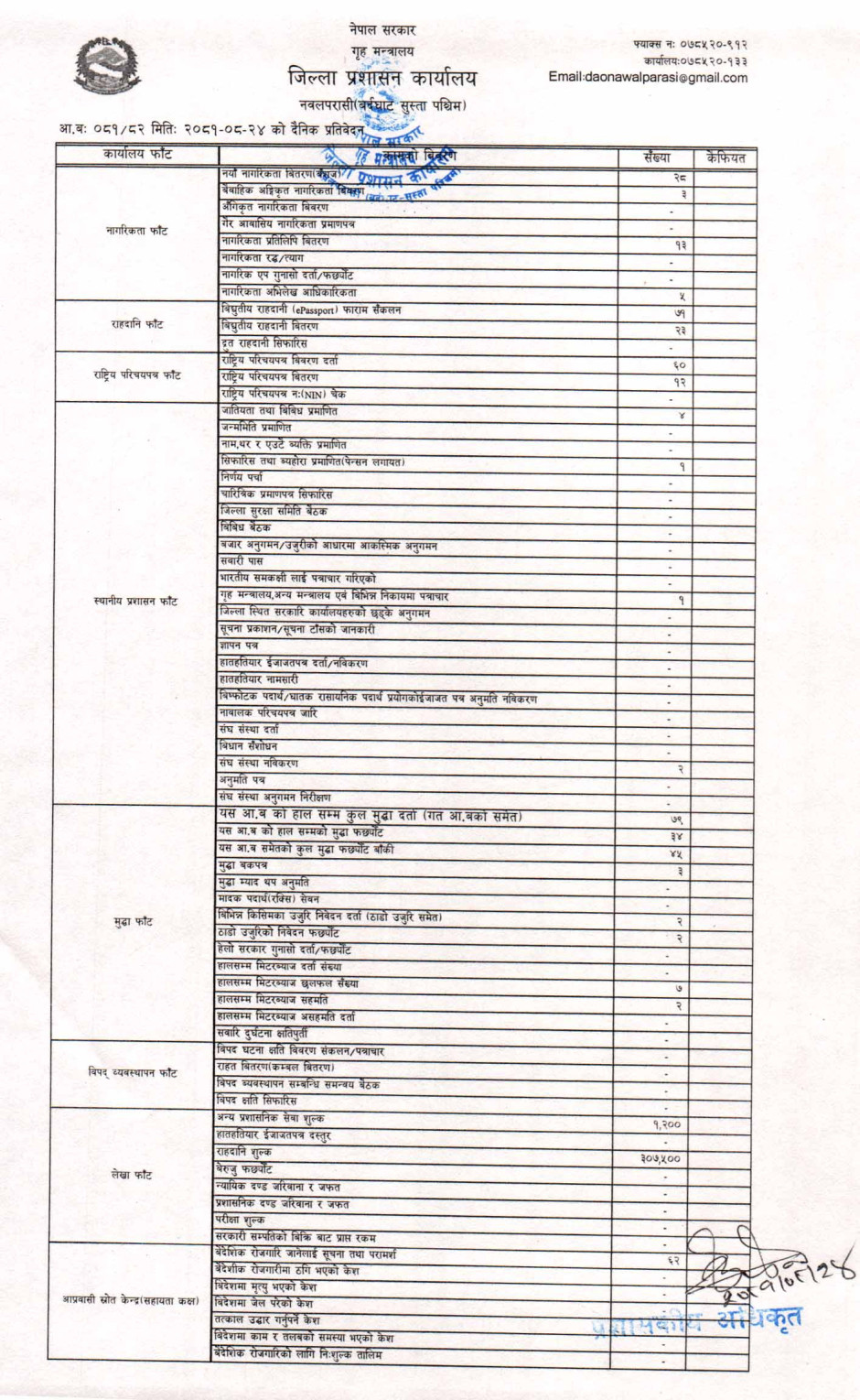 मिति २०८१।०८।२४ गतेका दिन सम्पादित गरिएका कार्यको संख्यात्मक विवरण