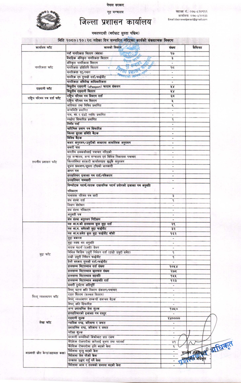 तस्बिर : मिति २०८०।१०।२८ गतेका दिन सम्पादित गरिएका कार्यको संख्यात्मक विवरण