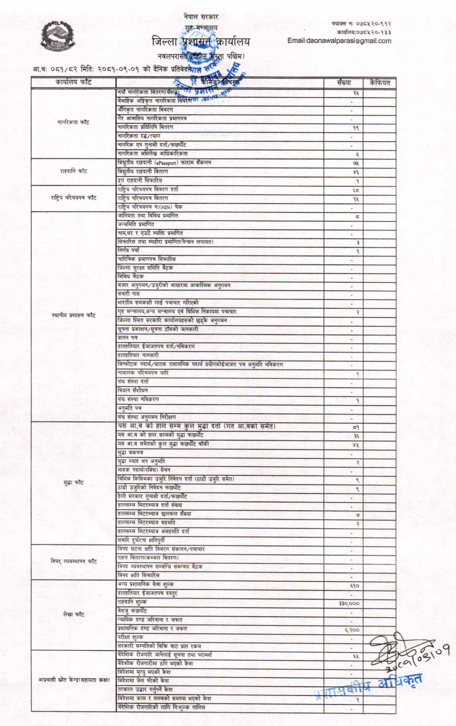तस्बिर : मिति २०८१।०९।०१ गतेका दिन सम्पादित गरिएका कार्यको संख्यात्मक विवरण