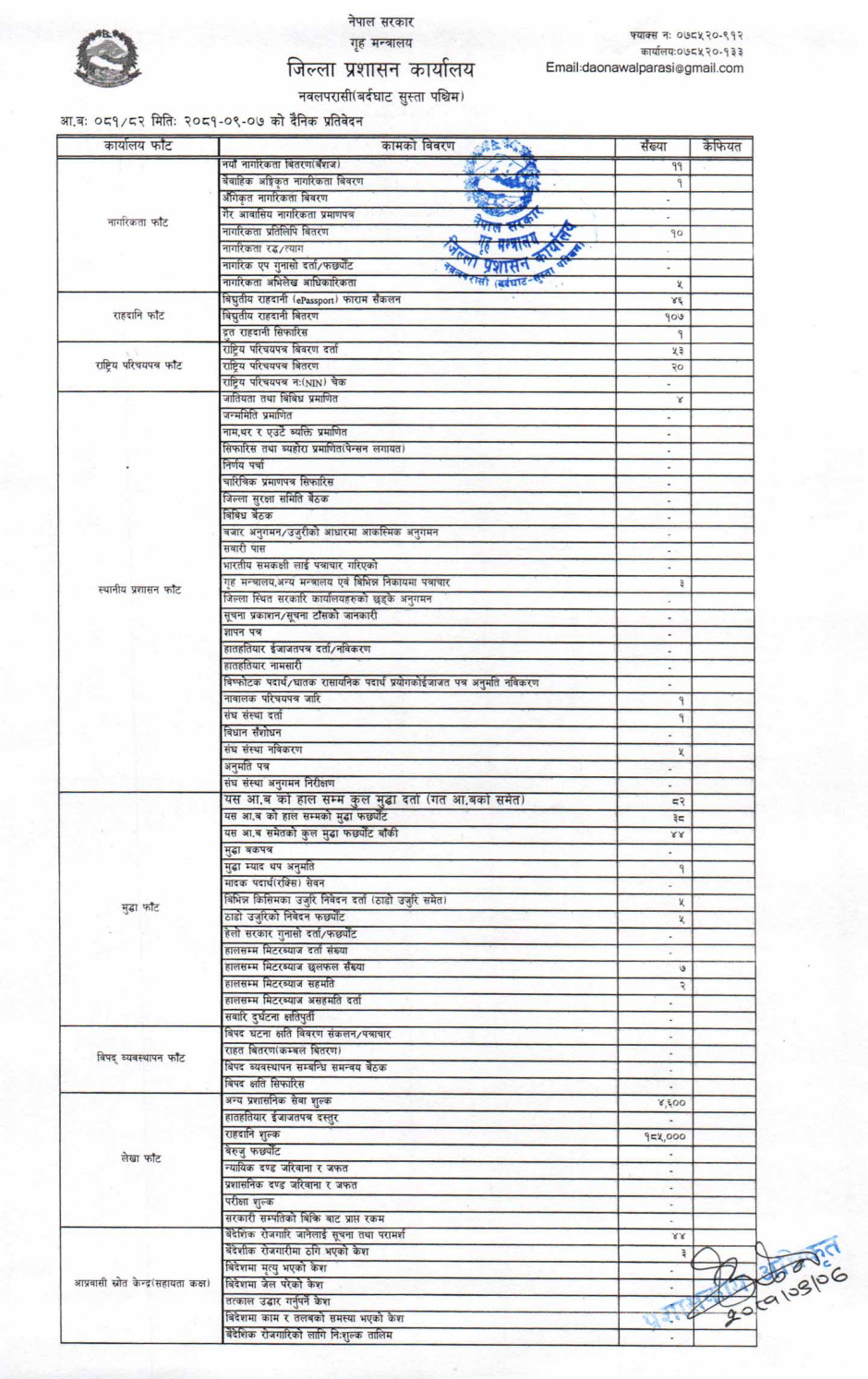 तस्बिर : मिति २०८१।०९।०७ गतेका दिन सम्पादित गरिएका कार्यको संख्यात्मक विवरण