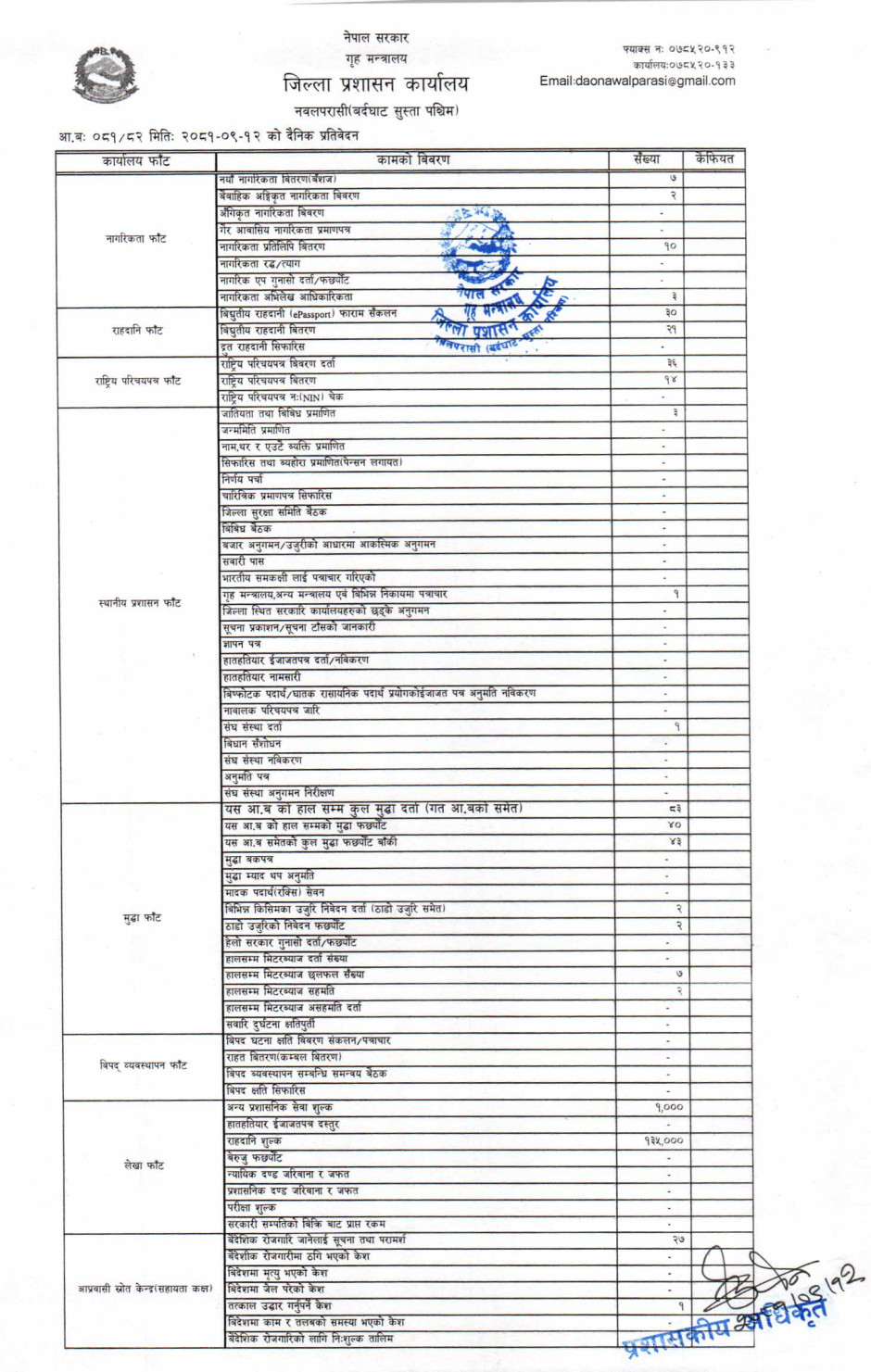 तस्बिर : मिति २०८१।०९।१२ गतेका दिन सम्पादित गरिएका कार्यको संख्यात्मक विवरण