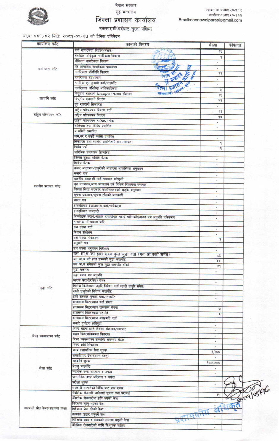 तस्बिर : मिति २०८१।०९।१७ गतेका दिन सम्पादित गरिएका कार्यको संख्यात्मक विवरण