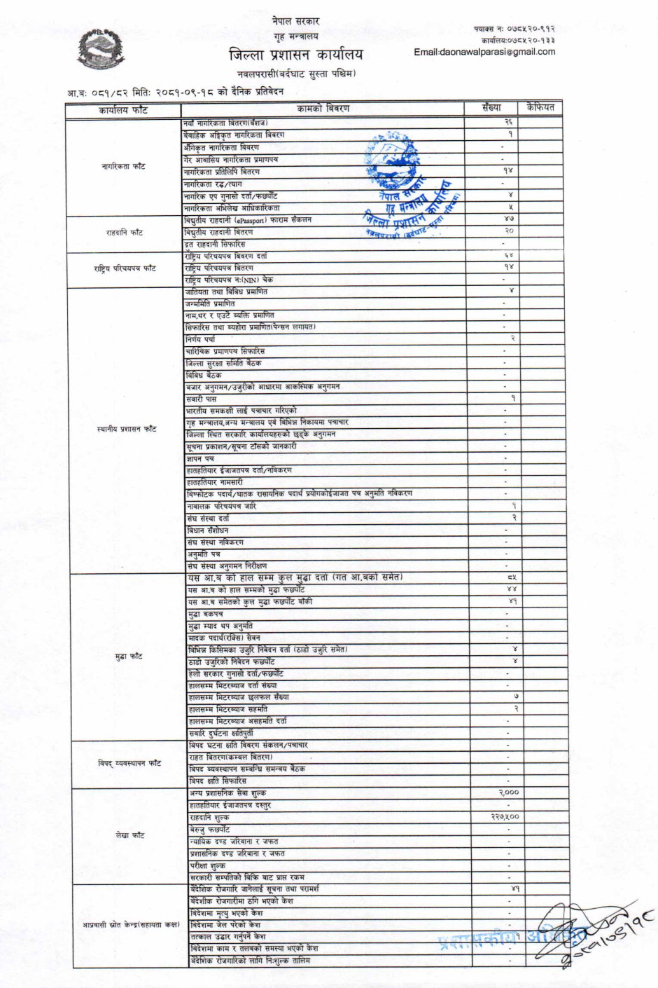 तस्बिर : मिति २०८१।०९।१८ गतेका दिन सम्पादित गरिएका कार्यको संख्यात्मक विवरण