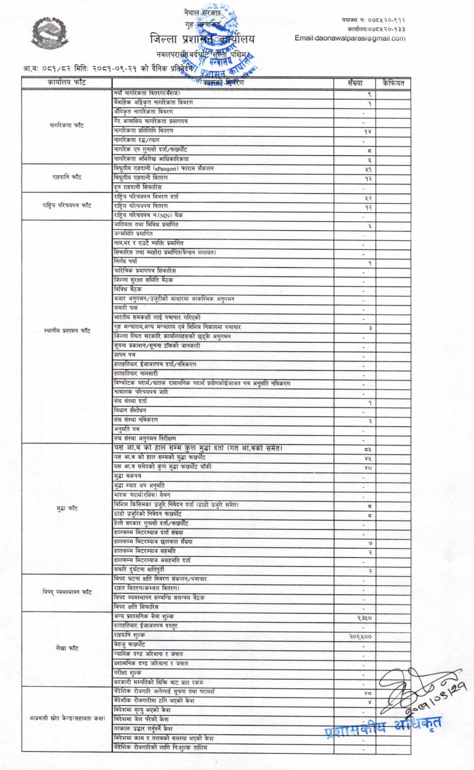 तस्बिर : मिति २०८१।०९।२१ गतेका दिन सम्पादित गरिएका कार्यको संख्यात्मक विवरण
