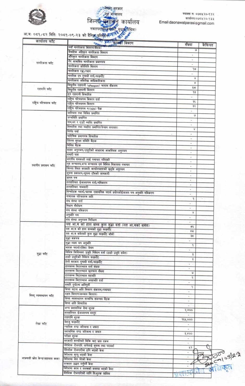 तस्बिर : मिति २०८१।०९।२३ गतेका दिन सम्पादित गरिएका कार्यको संख्यात्मक विवरण
