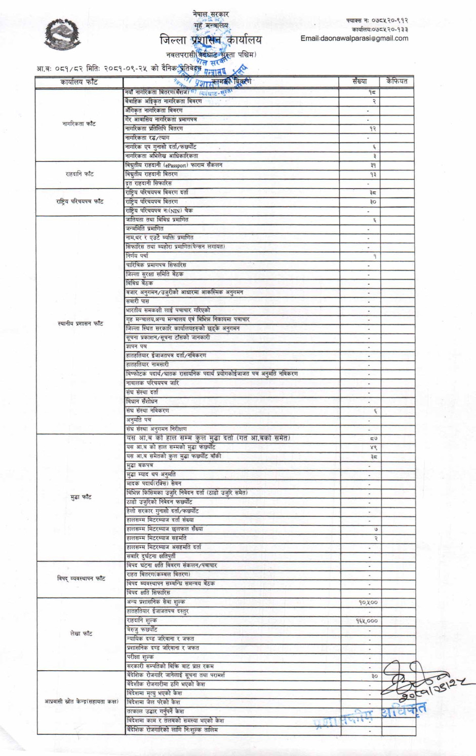 तस्बिर : मिति २०८१।०९।२५ गतेका दिन सम्पादित गरिएका कार्यको संख्यात्मक विवरण