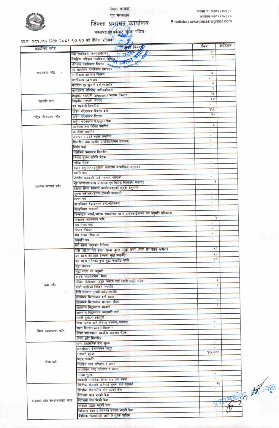 तस्बिर : मिति २०८१।१०।१० गतेका दिन सम्पादित गरिएका कार्यको संख्यात्मक विवरण