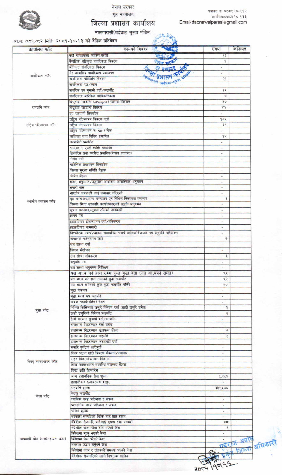 तस्बिर : मिति २०८१।१०।१३ गतेका दिन सम्पादित गरिएका कार्यको संख्यात्मक विवरण