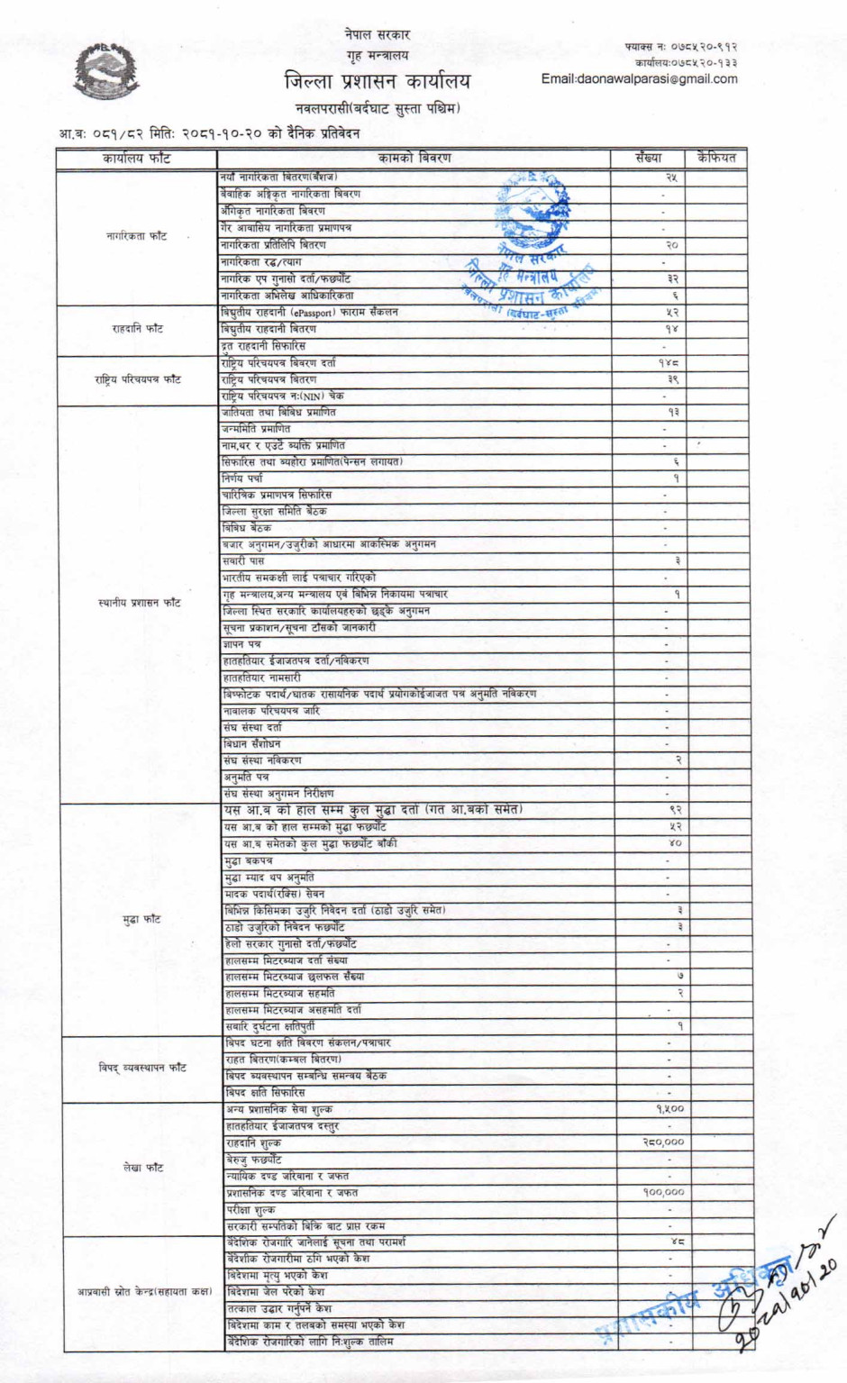 तस्बिर : मिति २०८१।१०।२० गतेका दिन सम्पादित गरिएका कार्यको संख्यात्मक विवरण