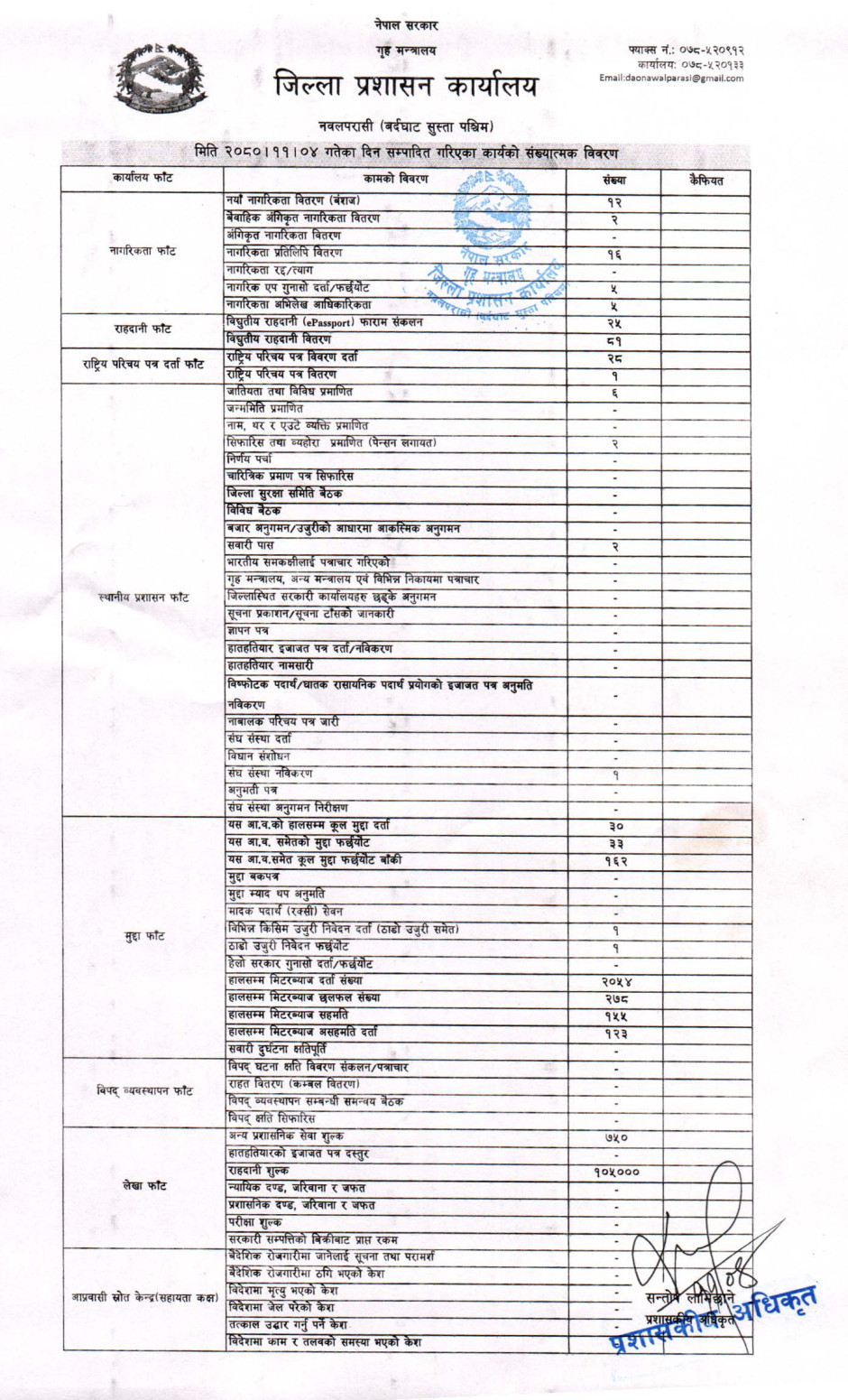 तस्बिर : मिति २०८०।११।०४ गतेका दिन सम्पादित गरिएका कार्यको संख्यात्मक विवरण