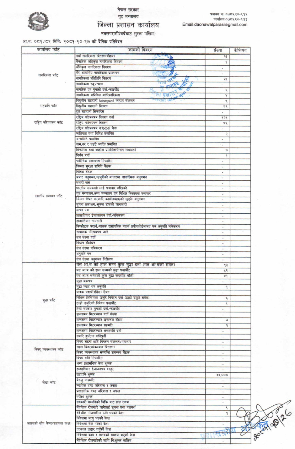 तस्बिर : मिति २०८१।१०।२७ गतेका दिन सम्पादित गरिएका कार्यको संख्यात्मक विवरण