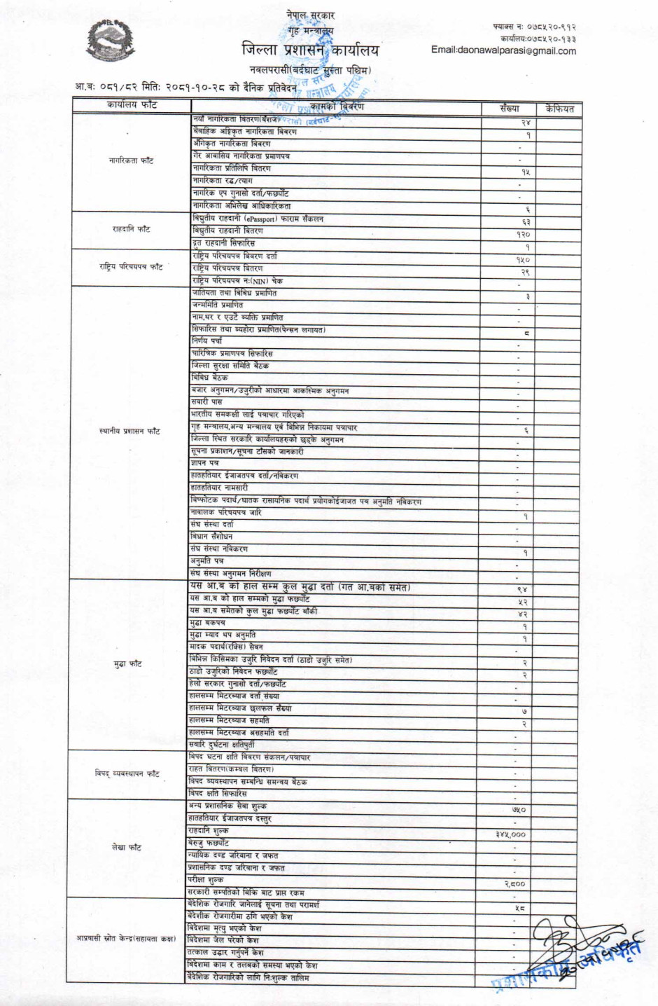 मिति २०८१।१०।२८ गतेका दिन सम्पादित गरिएका कार्यको संख्यात्मक विवरण