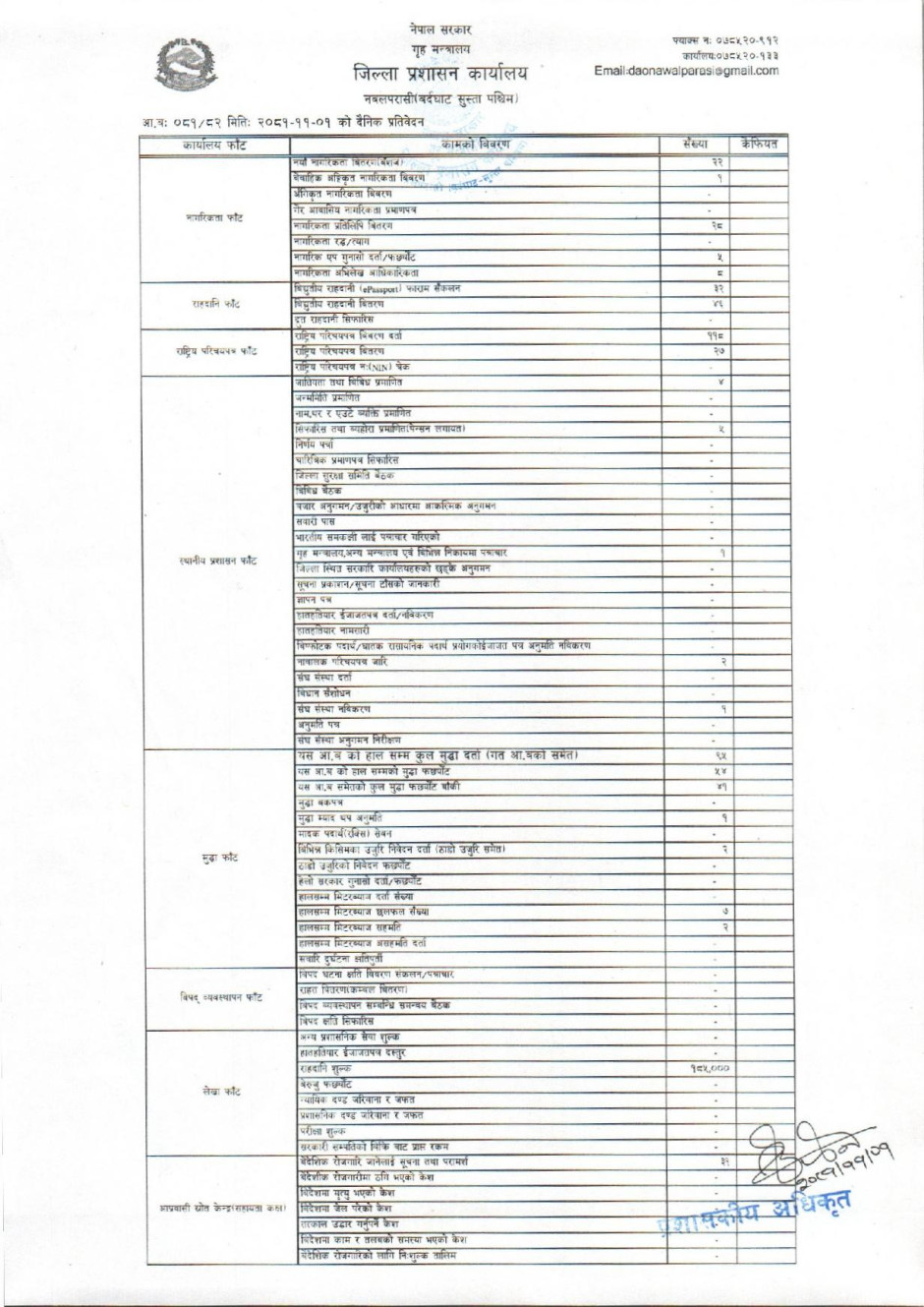 तस्बिर : मिति २०८१।११।०१ गतेका दिन सम्पादित गरिएका कार्यको संख्यात्मक विवरण