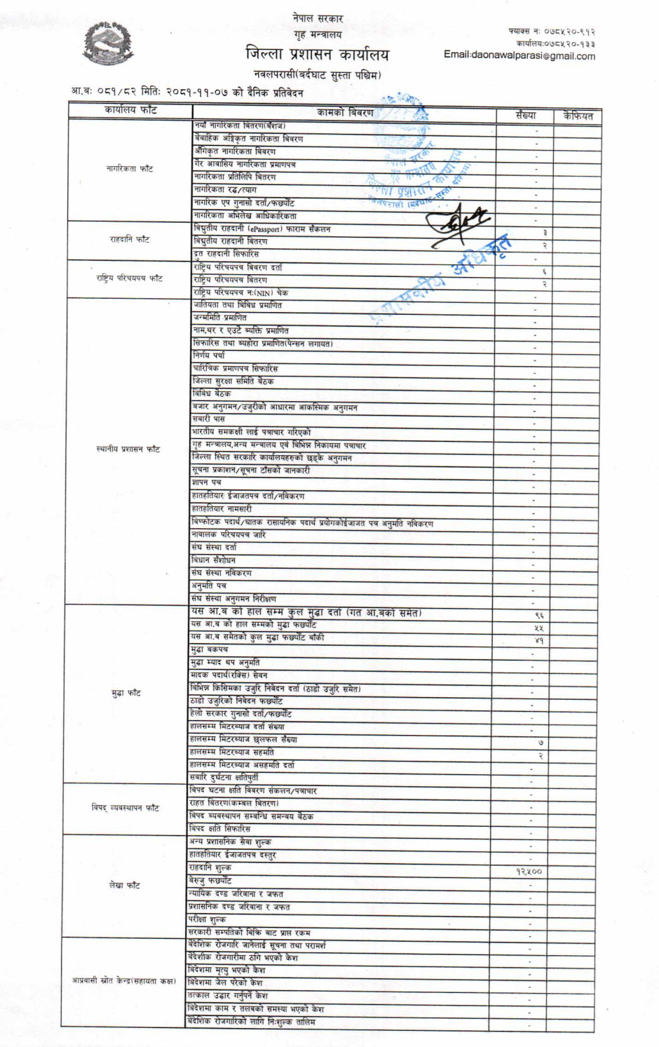 तस्बिर : मिति २०८१।११।०७ गतेका दिन सम्पादित गरिएका कार्यको संख्यात्मक विवरण