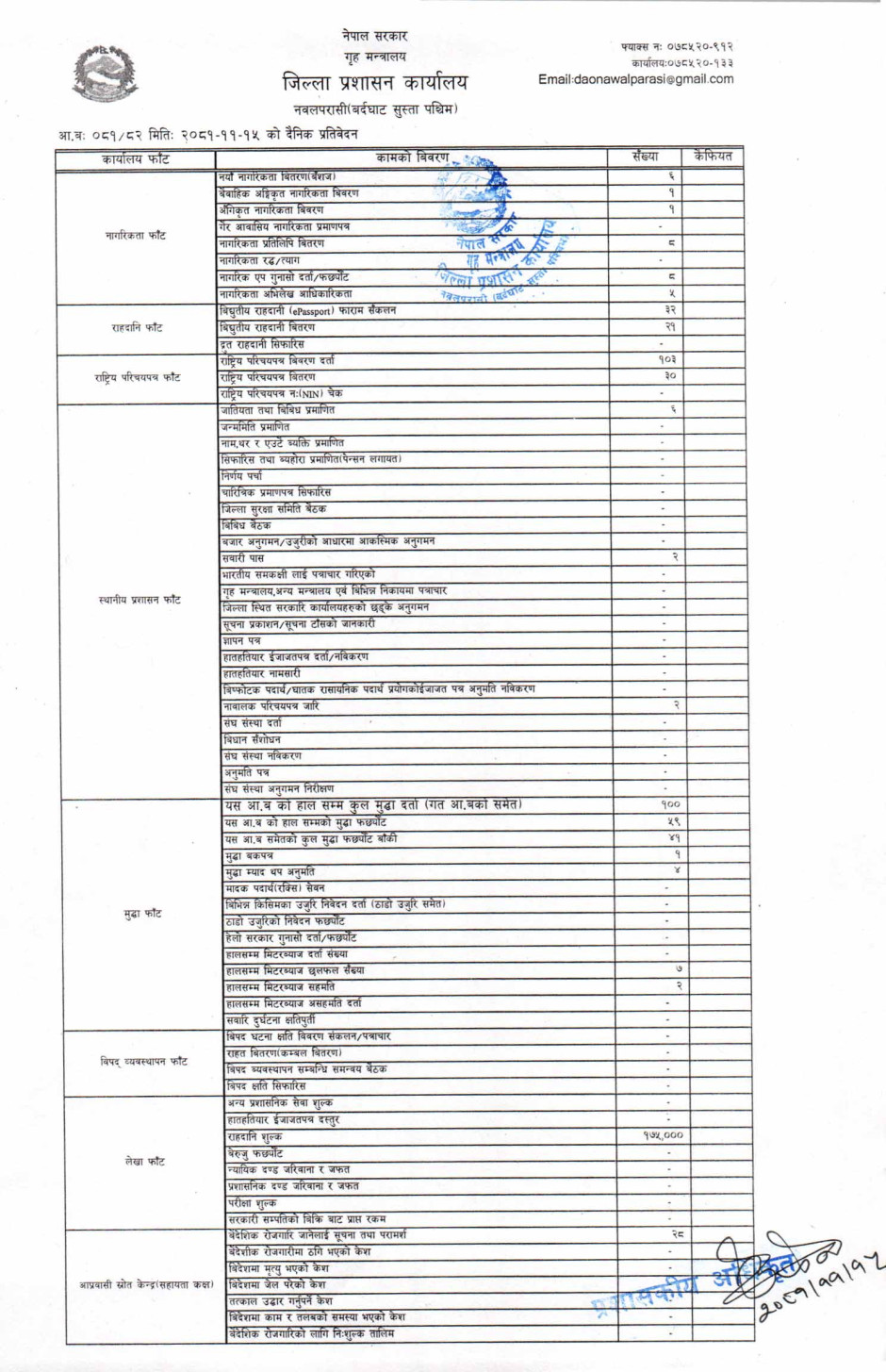 तस्बिर : मिति २०८१।११।१५ गतेका दिन सम्पादित गरिएका कार्यको संख्यात्मक विवरण