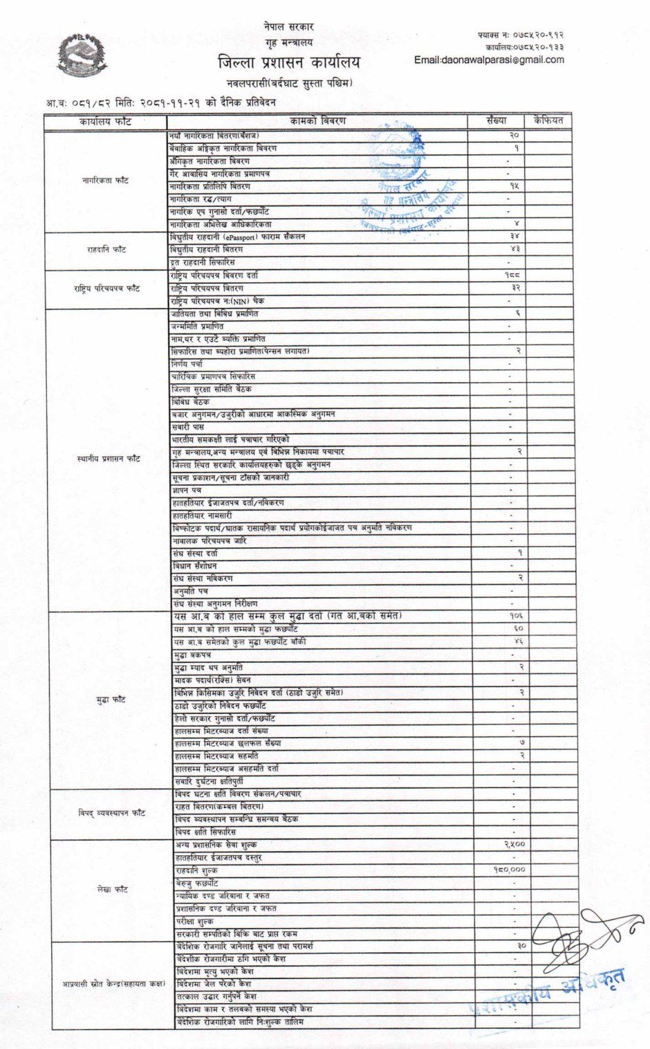 तस्बिर : मिति २०८१।११।२१ गतेका दिन सम्पादित गरिएका कार्यको संख्यात्मक विवरण