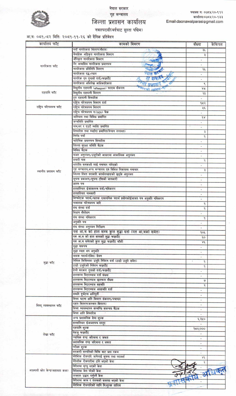 तस्बिर : मिति २०८१।११।२६ गतेका दिन सम्पादित गरिएका कार्यको संख्यात्मक विवरण