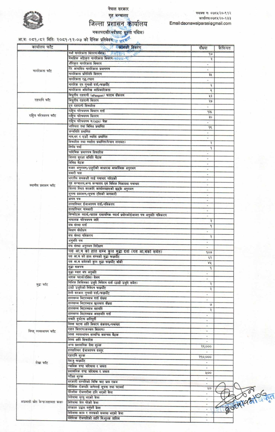तस्बिर : मिति २०८१।१२।०७ गतेका दिन सम्पादित गरिएका कार्यको संख्यात्मक विवरण