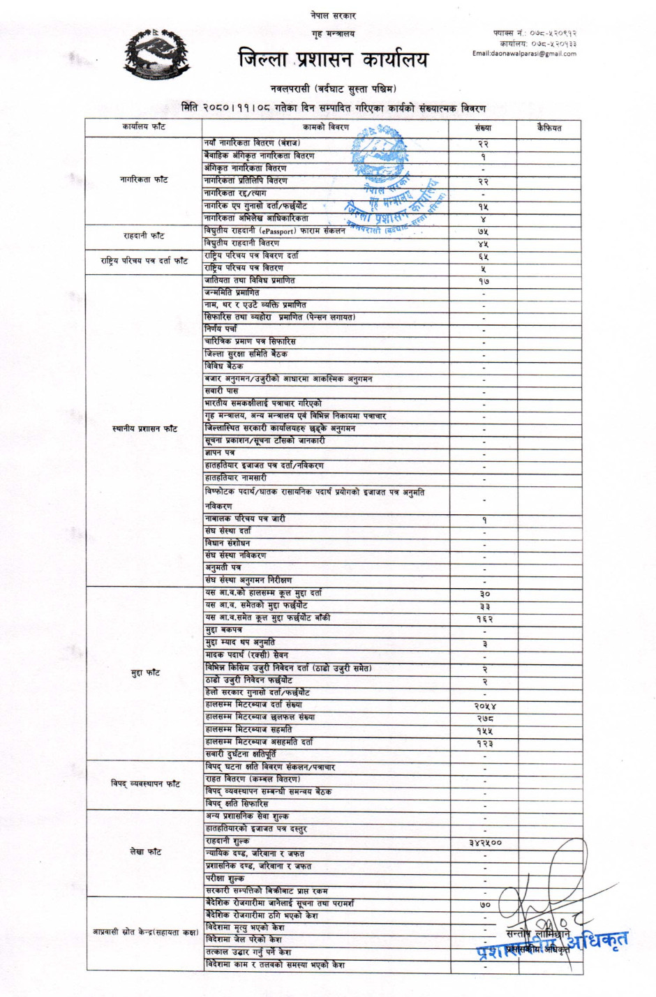 तस्बिर : मिति २०८०।११।०८ गतेका दिन सम्पादित गरिएका कार्यको संख्यात्मक विवरण