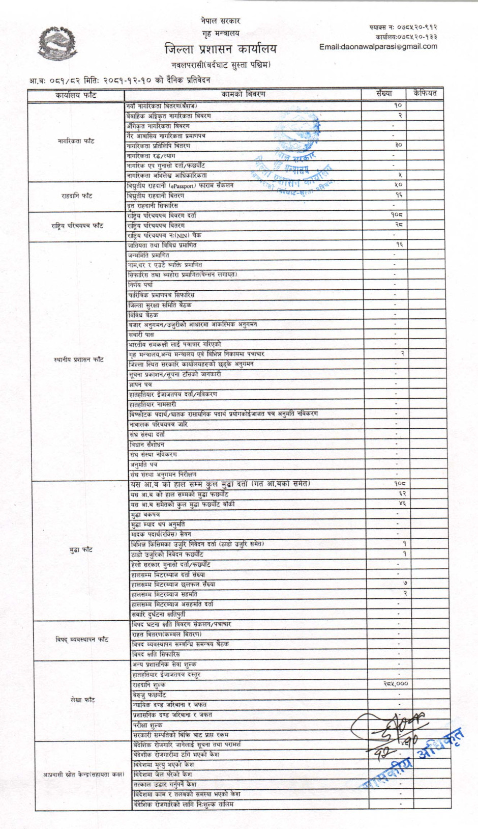 तस्बिर : मिति २०८१।१२।१० गतेका दिन सम्पादित गरिएका कार्यको संख्यात्मक विवरण