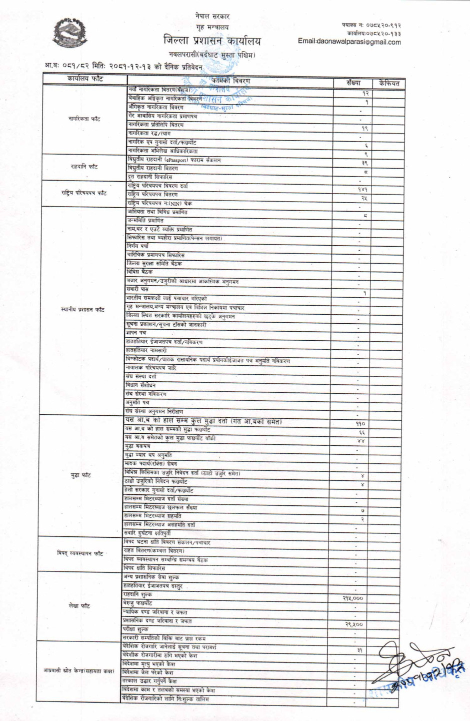 तस्बिर : मिति २०८१।१२।१३ गतेका दिन सम्पादित गरिएका कार्यको संख्यात्मक विवरण