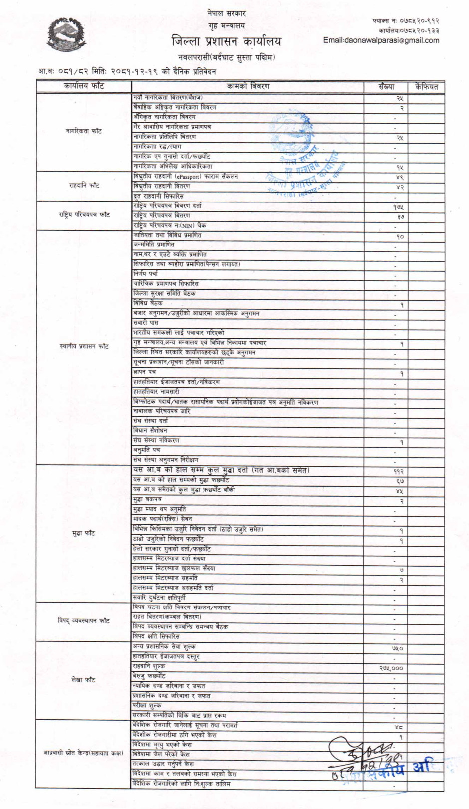 तस्बिर : मिति २०८१।१२।१९ गतेका दिन सम्पादित गरिएका कार्यको संख्यात्मक विवरण