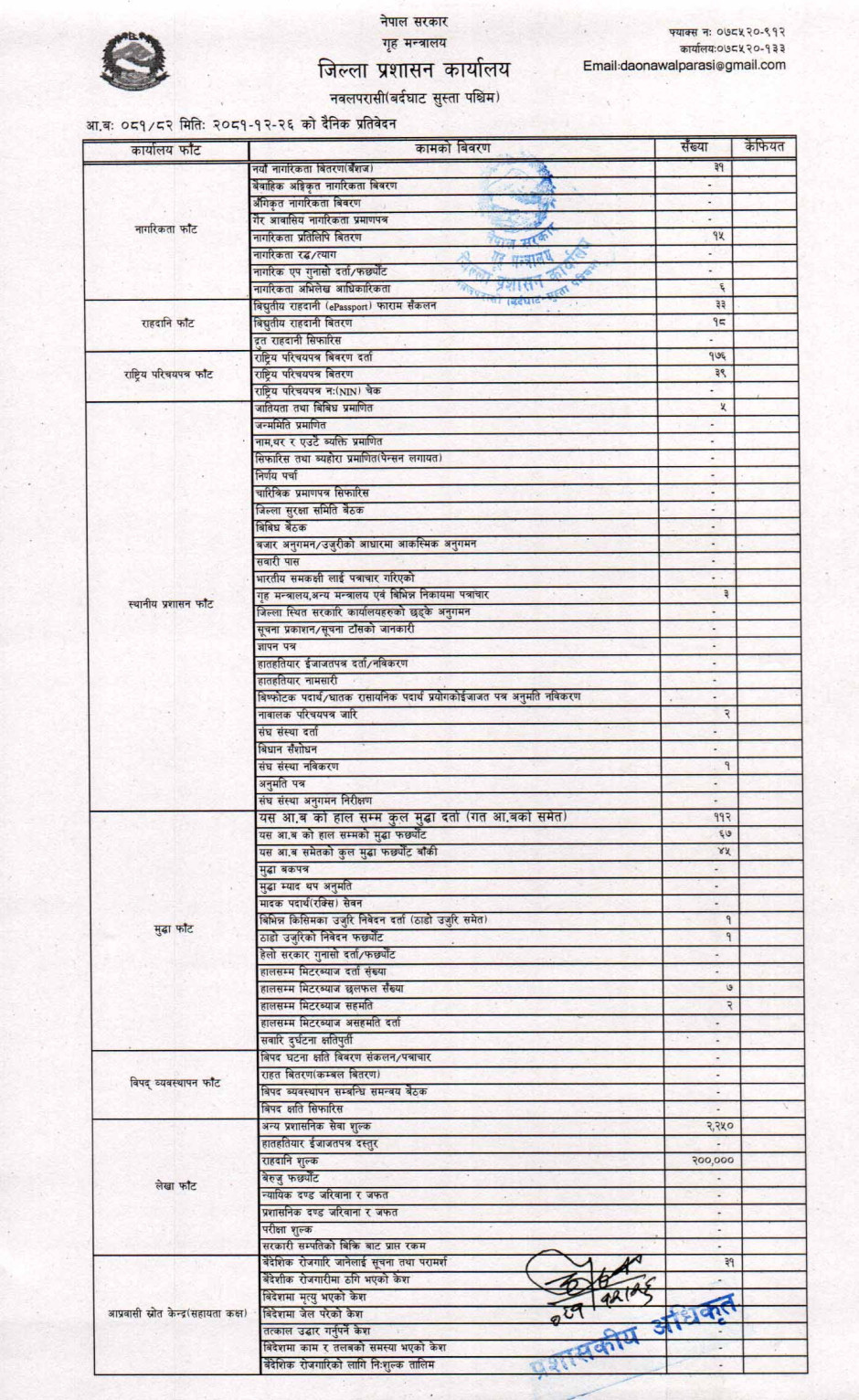 तस्बिर : मिति २०८१।१२।२६ गतेका दिन सम्पादित गरिएका कार्यको संख्यात्मक विवरण