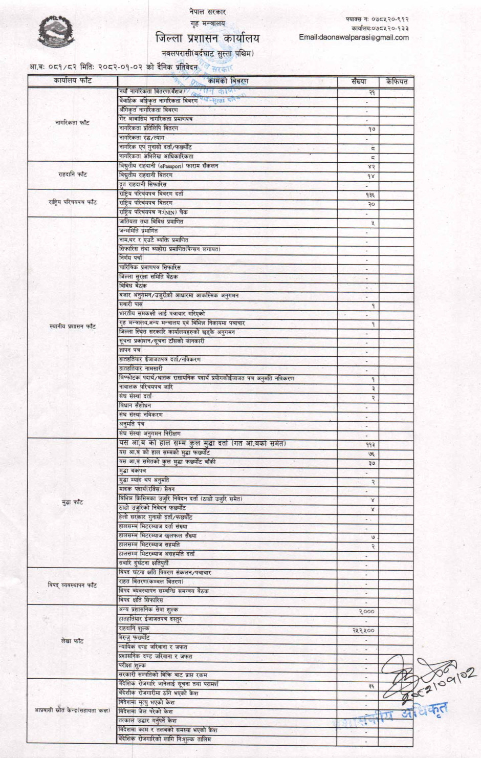 तस्बिर : मिति २०८२।०१।०२ गतेका दिन सम्पादित गरिएका कार्यको संख्यात्मक विवरण