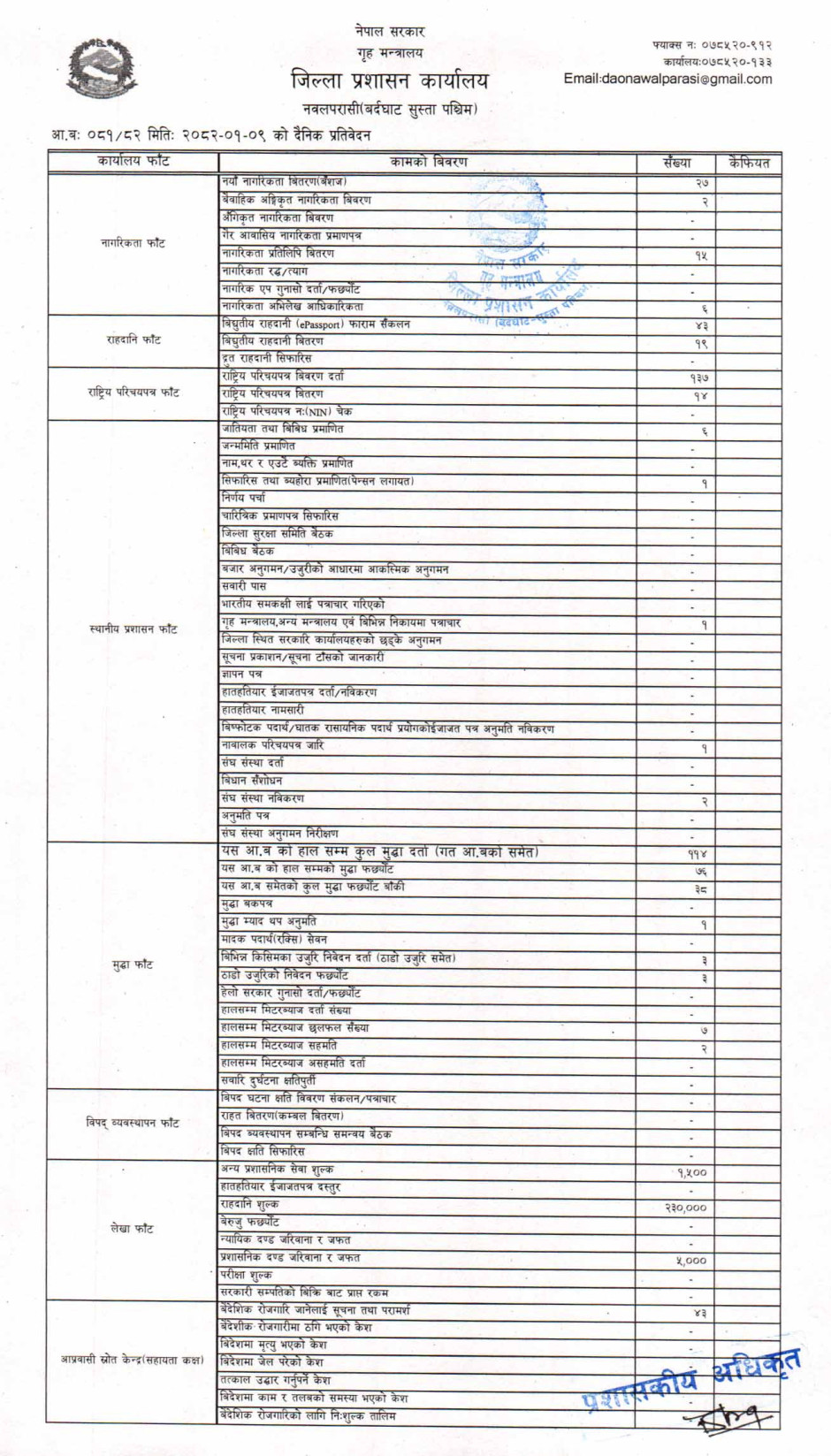 तस्बिर : मिति २०८२।०१।०९ गतेका दिन सम्पादित गरिएका कार्यको संख्यात्मक विवरण