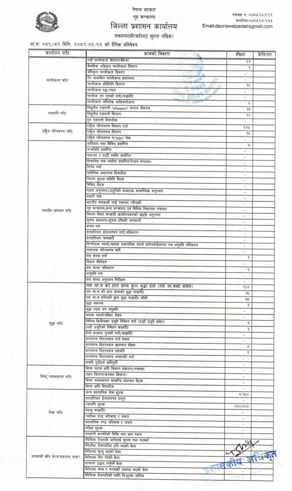 तस्बिर : मिति २०८२।०१।१० गतेका दिन सम्पादित गरिएका कार्यको संख्यात्मक विवरण