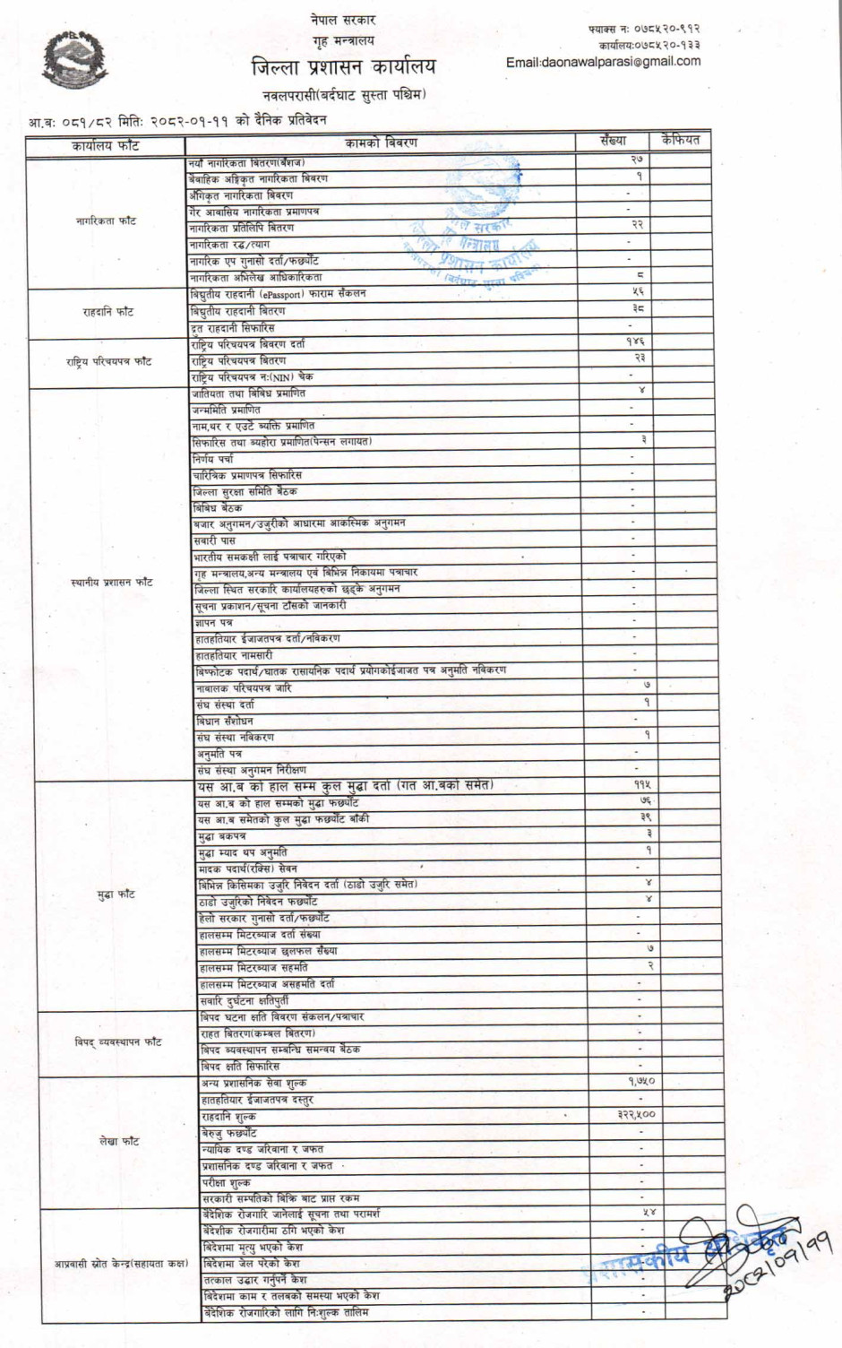 तस्बिर : मिति २०८२।०१।११ गतेका दिन सम्पादित गरिएका कार्यको संख्यात्मक विवरण