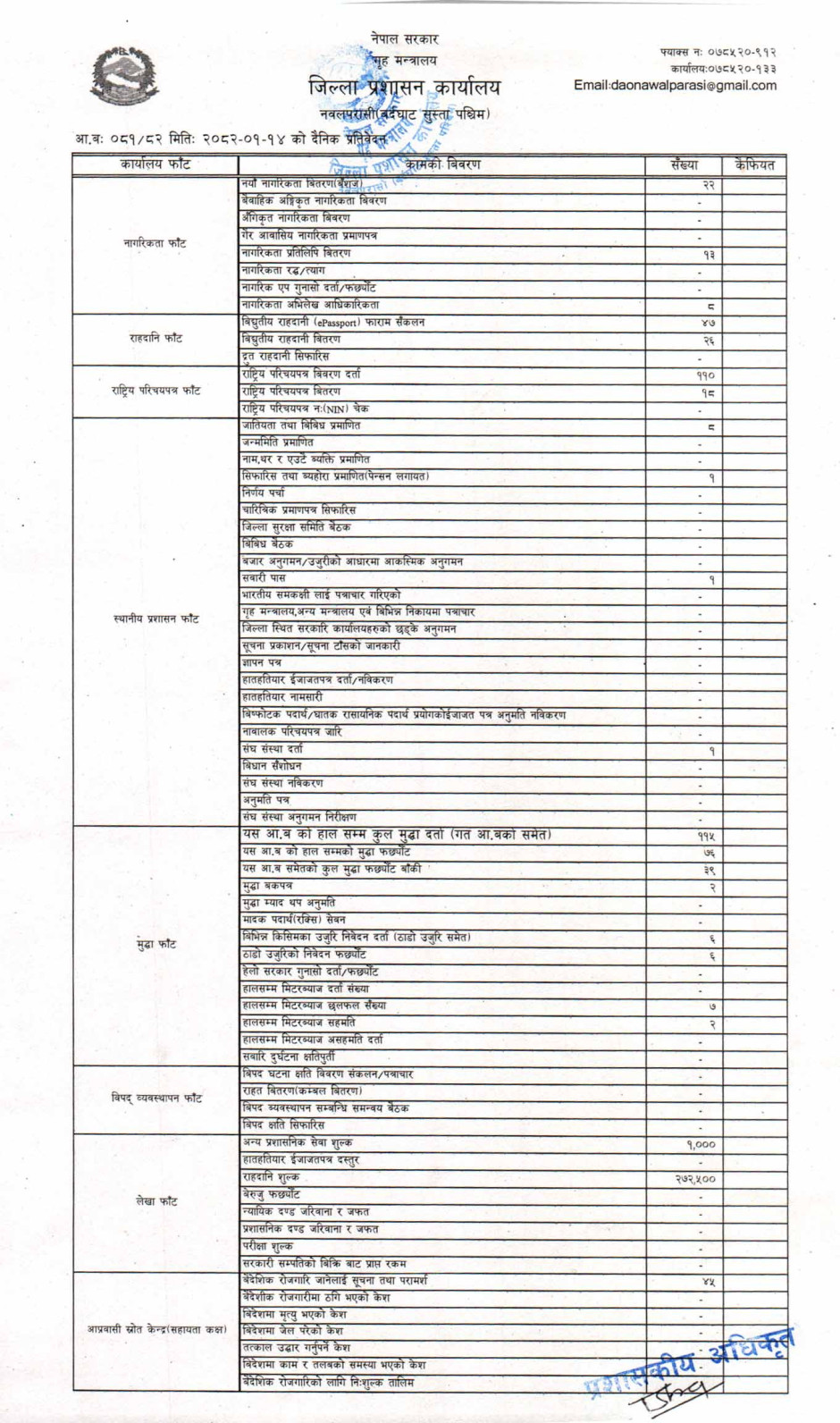 तस्बिर : मिति २०८२।०१।१४ गतेका दिन सम्पादित गरिएका कार्यको संख्यात्मक विवरण