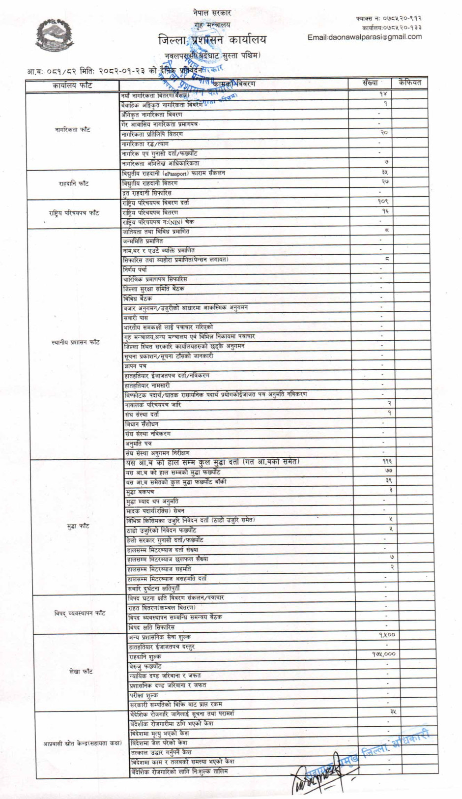 तस्बिर : मिति २०८२।०१।२३ गतेका दिन सम्पादित गरिएका कार्यको संख्यात्मक विवरण