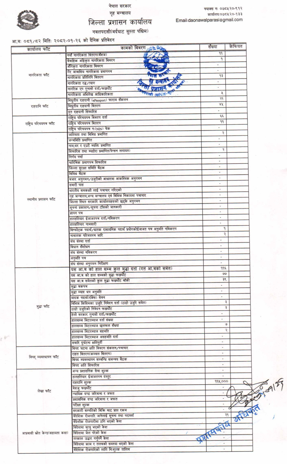तस्बिर : मिति २०८२।०१।२६ गतेका दिन सम्पादित गरिएका कार्यको संख्यात्मक विवरण